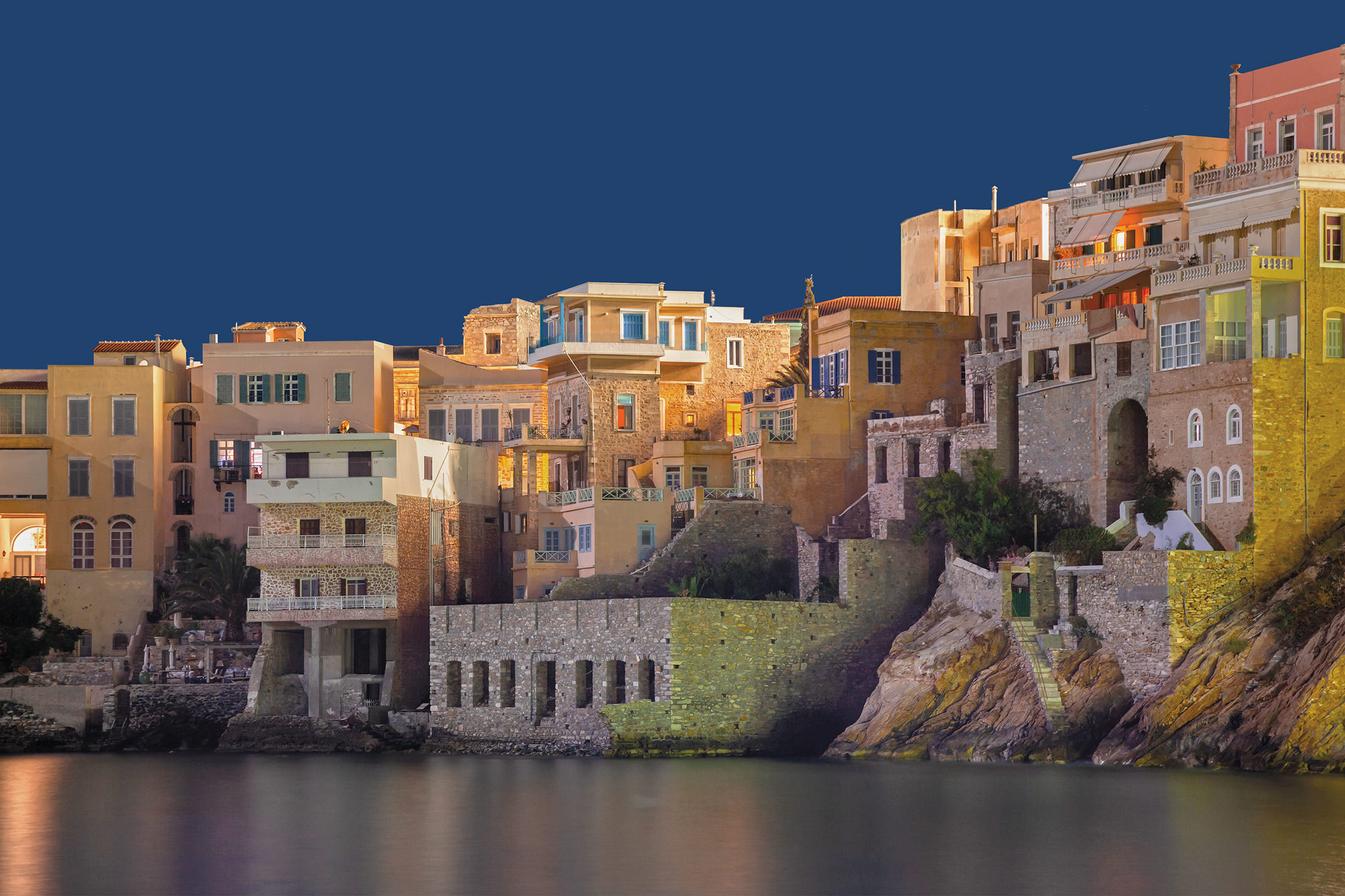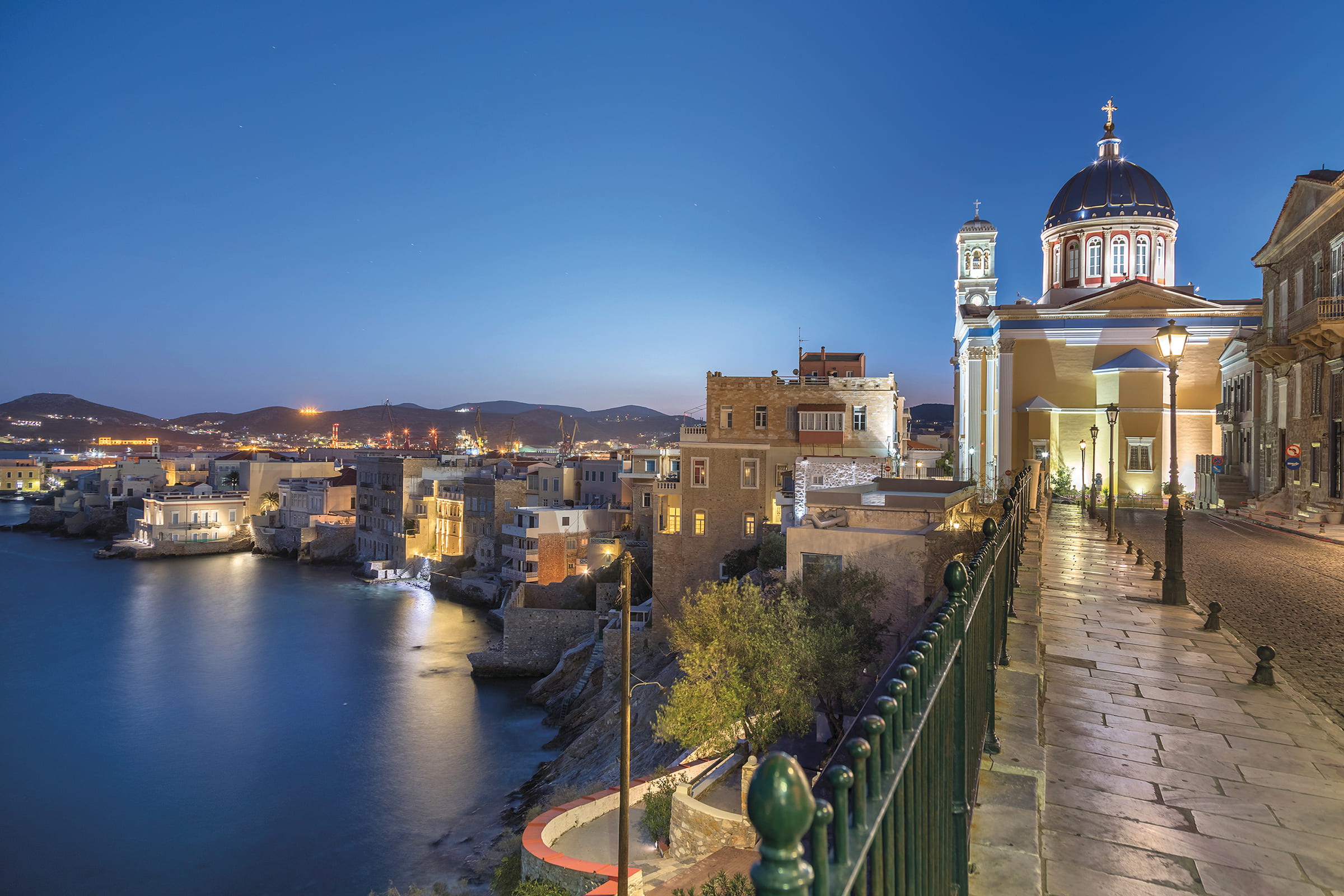 Welcome to Vaporia, one of the most breathtaking neighbourhoods of Syros, where history and architecture blend seamlessly with the Aegean’s endless blue. Nestled on the eastern side of Hermoupolis, this iconic district is renowned for its magnificent neoclassical mansions, seemingly suspended over the sea, creating an awe-inspiring view that has earned it the nickname “Little Venice.”