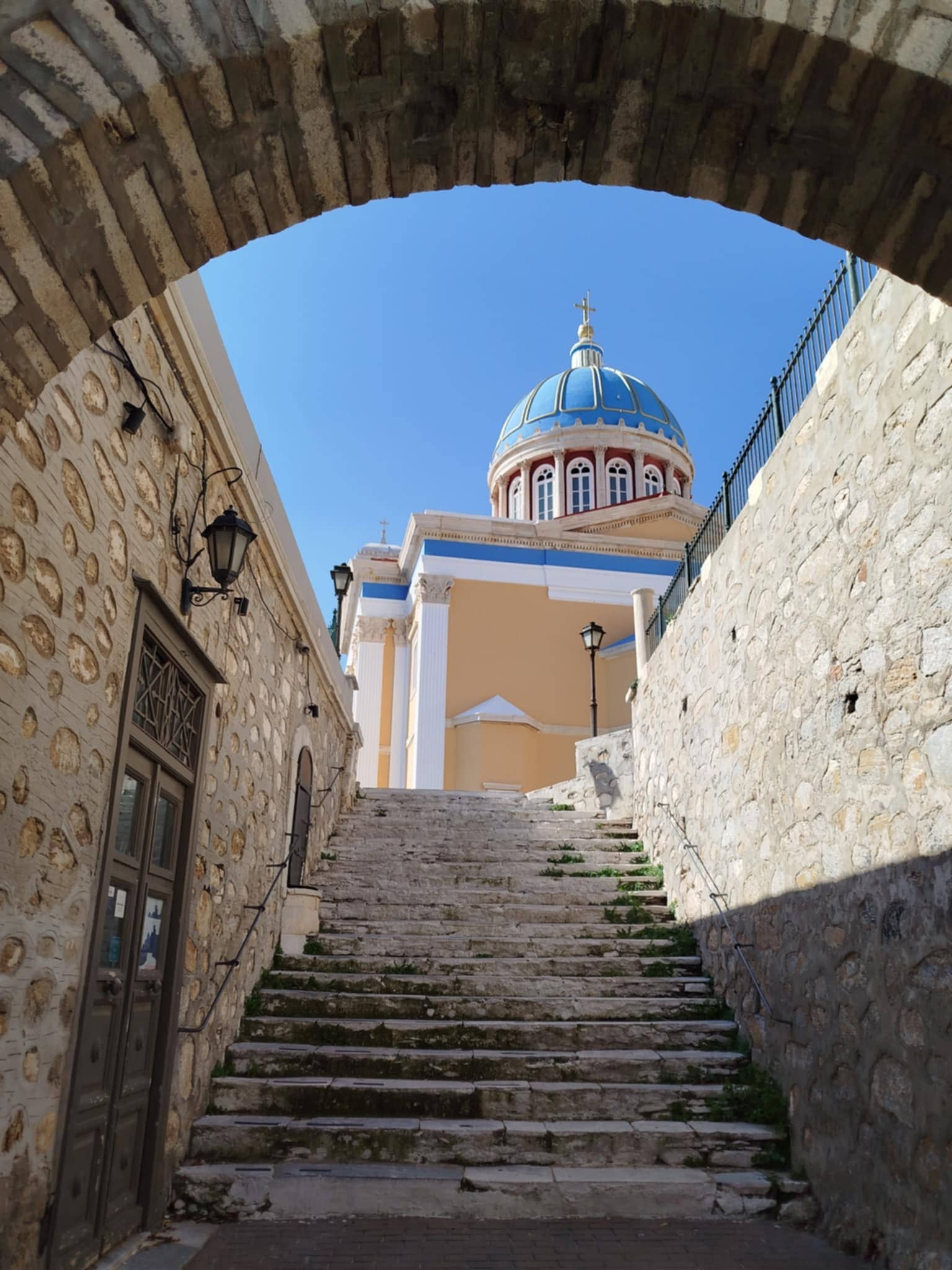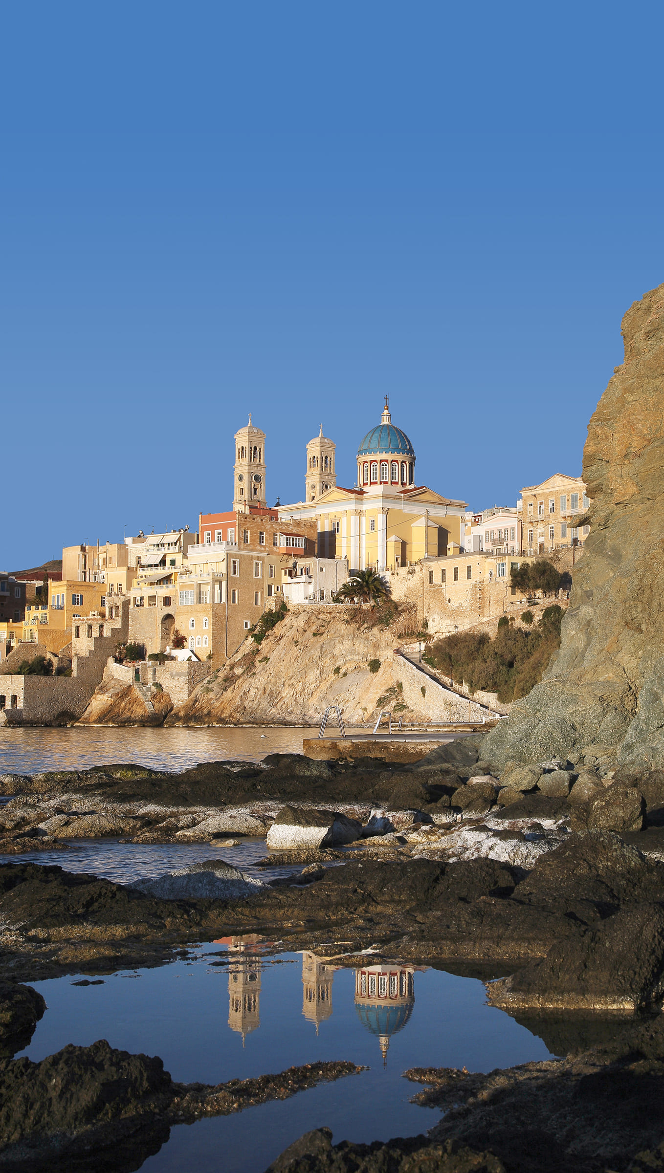 “Vaporia district is located just a few minutes’ walk from the centre of Hermoupolis, the vibrant local market, the iconic Town Hall, and the illustrious Apollo Theatre — often regarded as a miniature of Milan’s famous La Scala.”Just a short walk away, you will find “Asteria,” a beloved spot where the crystal-clear waters of the Aegean invite you to dive into serenity. Overlooking this picturesque setting is the imposing church of Agios Nikolaos, with its striking blue dome that proudly marks the entrance to Vaporia.